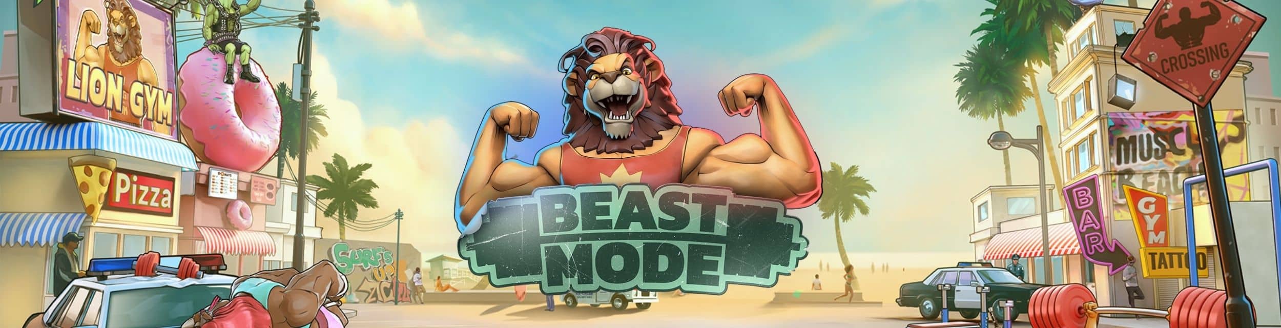 Beast Mode speelt zich af rond het einde van de jaren ‘80, het begin van de jaren 90, waar je om stoer te zijn als man moest beschikken over spierballen, sieraden, en een draagbare radio. Vanwege de LA-kenmerken in de game lijkt de game wat op Big Time Gaming’s East Coast vs. West Coast. Ook in deze productie is de soundtrack weer van grote invloed op de hele sfeer. De kleinere details in de game, zoals de manier waarop symbolen van de rollen worden gesneden wanneer ze winnende combinaties vormen, en de bijbehorende geluidseffecten zorgen voor een voldaan gevoel, in ieder geval bij ons. Het concept is net zo creatief als dat van Iron Bank was, terwijl de toch wat ongewone feel good-vibe uit deze game ook aanleiding zijn om het eens te proberen — ook al is dit misschien niet helemaal een gebruikelijk thema voor de meeste spelers.