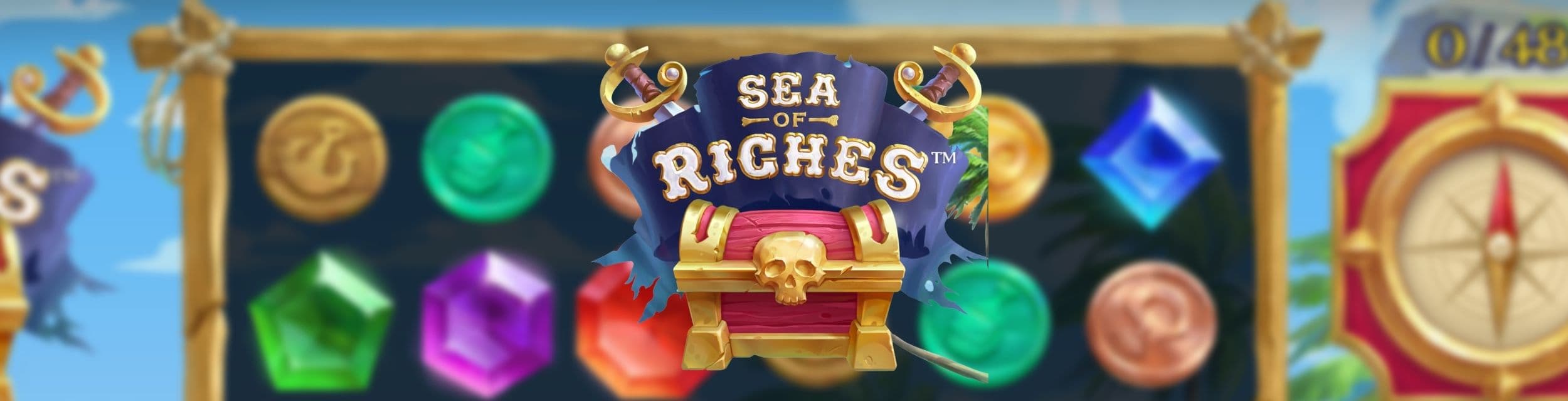 Sea of Riches is visueel gezien een mooi spel met piratenthema. De game wordt gespeeld op een speelveld van 6×6 symbolen waarmee clusters kunnen worden gemaakt. Dat mag in dit geval met 5 of meer soortgelijke symbolen. Op de achtergrond van de game zie je het prachtige blauwe water van de zee en links staat de kapitein te wachten. In dit geval heeft hij ook een houten been en zit er een papegaai op z’n schouder. Wat dat betreft hebben we het dus over een rasechte piraat. De symbolen in Sea of Riches bestaan uit zo’n beetje elke munt en edelsteen die je in een willekeurige piratenschat zou aantreffen. Ook is er een wild symbool dat elk regulier symbool kan vervangen om grotere clusters te maken.